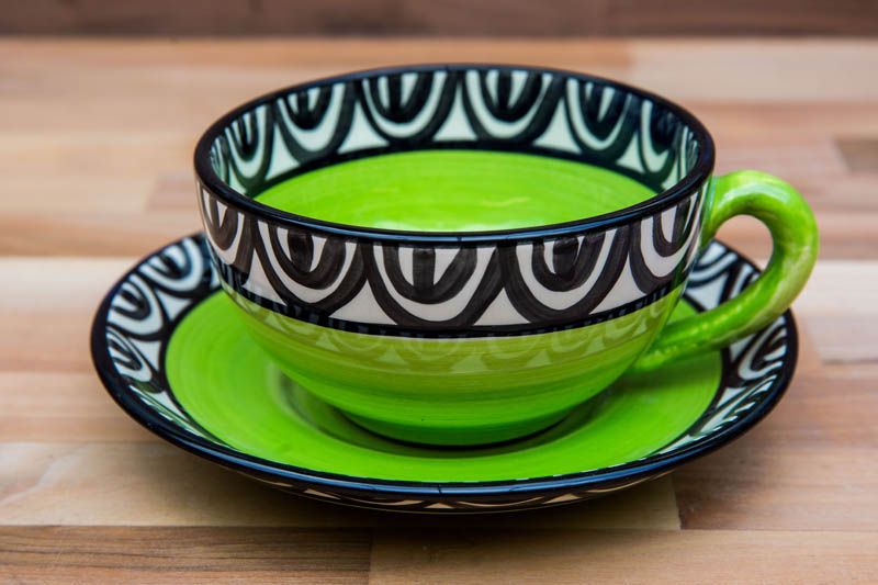 Aztec breakfast cup and saucer in Lime Green – 410ml