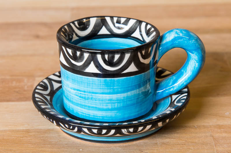 Abstract espresso cup and saucer in Bright Blue – 75ml