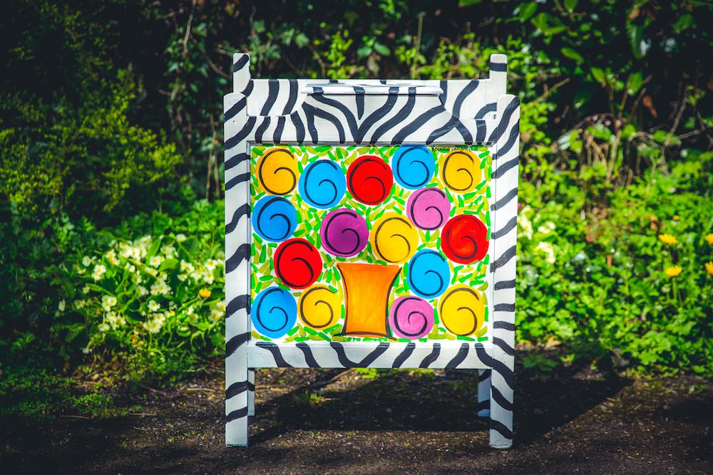 Hand painted hall stand in our Reckless Rosie design. Finished with a hard wearing protective sealer. A great piece to brighten up any space with both storage and display areas.