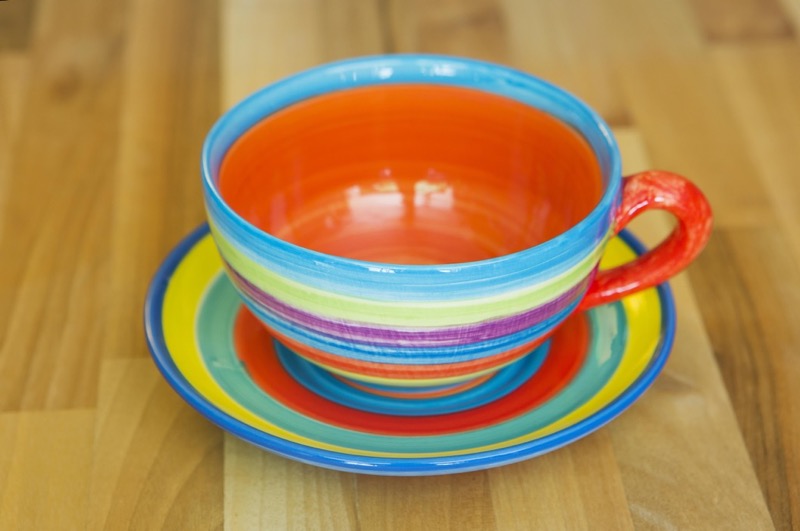 Horizontal Stripey breakfast cup and saucer in Candy – 410ml