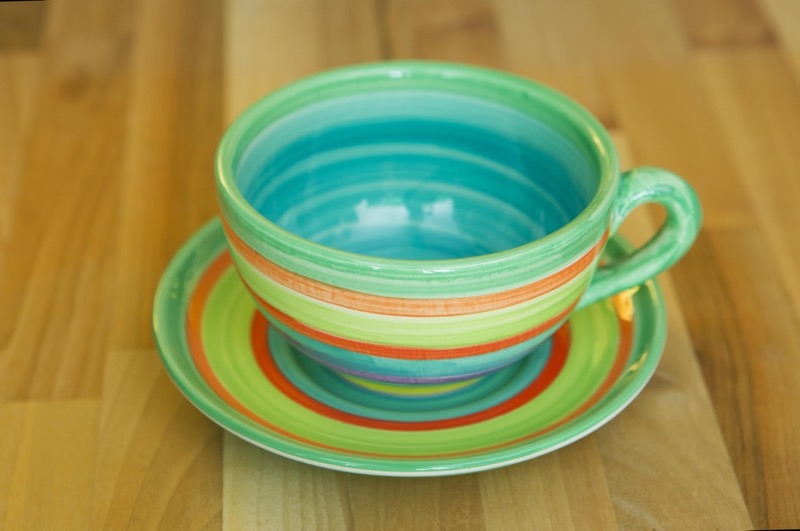 Horizontal Stripey breakfast cup and saucer in Green – 410ml