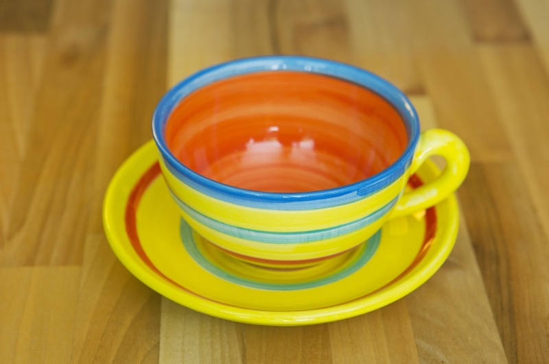 Horizontal Stripey breakfast cup and saucer in Yellow – 410ml