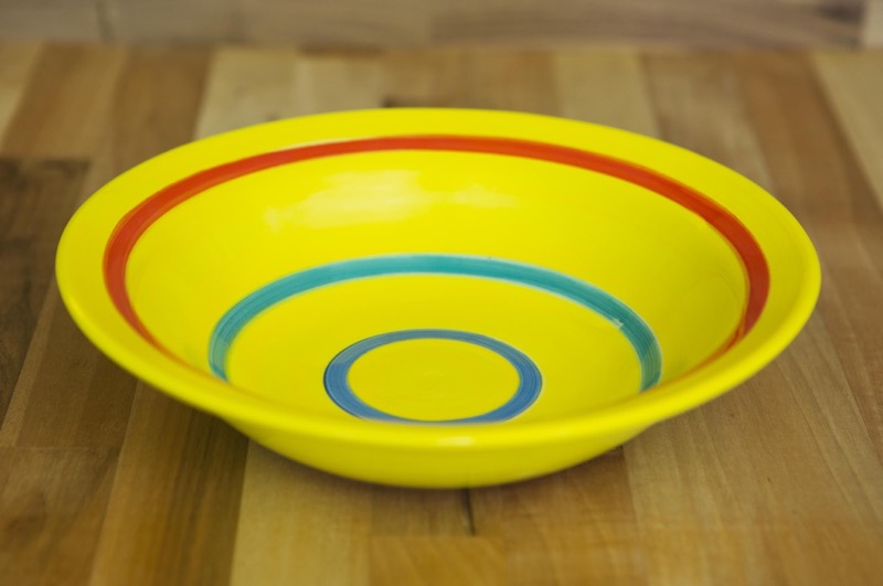 Horizontal stripey pasta bowl in yellow