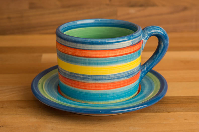 Horizontal stripey cappuccino cup and saucer in Blue – 180ml