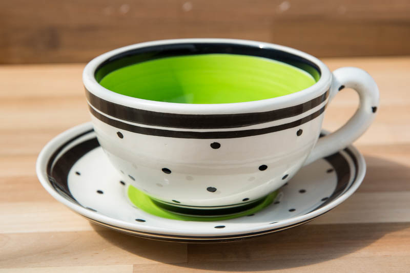 Black and White breakfast cup and saucer in Polka Dot – 410ml