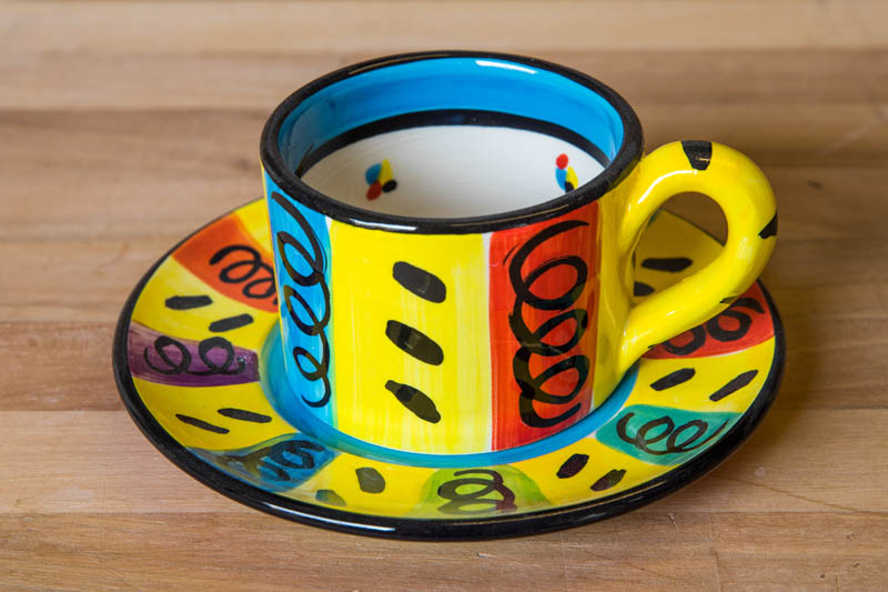 Vertical Stripey cappuccino cup and saucer in Multi – 180ml